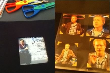 CB also has some visually-creative minds. Artistic Director Tony Parise has an “interior designer eye” both on-stage and off. He’s been known to do “improvements” wherever he goes, including the JFK suites at Harvard (the rooms that John F. Kennedy occupied when he attended): he wanted to feel comfortable and re-arranged the room to his liking, including taking some framed objects off the wall and storing them away in a closet. The campus police weren’t too thrilled back then, but set designers he works with now are open to his ideas and the pictures his mind sees. Speaking of pictures, Addie is handy when it comes to a camera and enjoys working towards being a photographer. Sami uses her photos to create scrapbooks that she gives as gifts to her friends. She also made one for Anthony Rapp, pictured below.